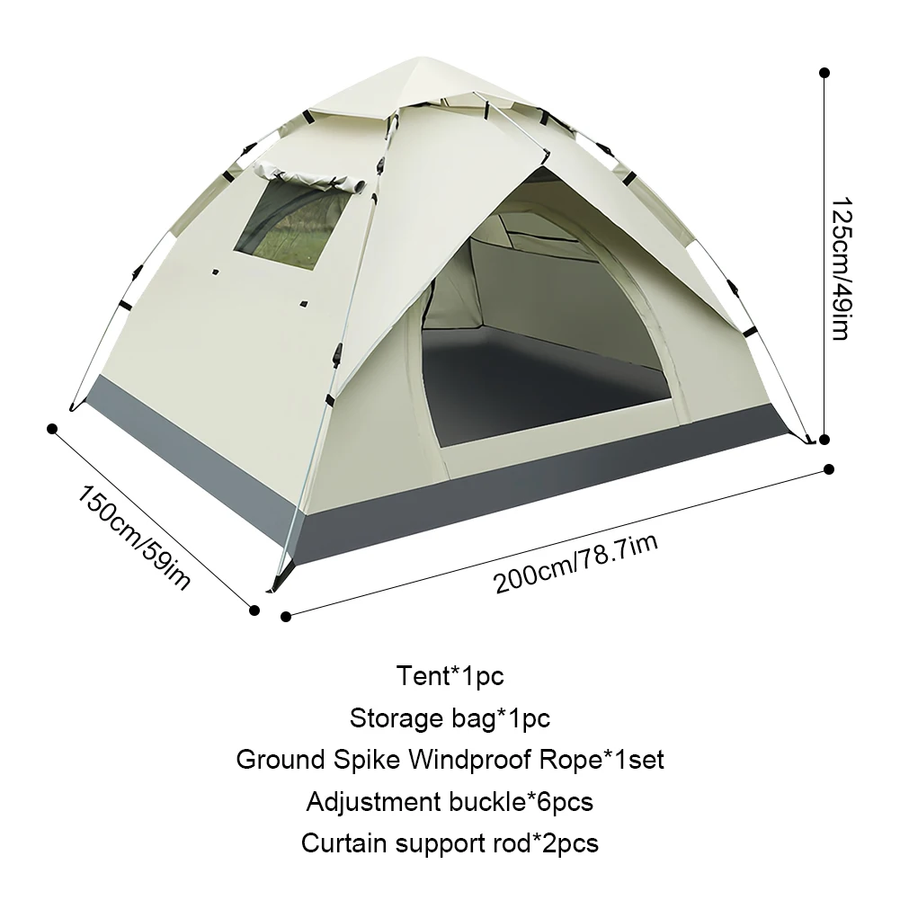 ![]() Fully Automatic Quick Open Tent Lightweight Portable Tent Waterproof Easy Set Up Tent for Hiking Backpacking Camping Specification: Product size: About 2000.00x1500.00x1250.00mm/78.74x59.06x49.21in Type: Pyramid tent Building Type: Construction Based on Need Layers: DOUBLE Pole Material: FIBERGLASS Style: Outdoor Outside Tent Waterproof Index:1500-2000 mm Season: Four-season Tent Bottom Waterproof Index:1500-2000 mm Structure: One Bedroom Fabric: 600D Oxford with reflective mylar material Number of Users: Two Material: Man-made fibres Note: Due to different monitor settings and lighting conditions, the actual color of the item may vary slightly from the pictures. Thanks for your understanding! Please allow a 1-2 cm difference in measurements due to manual measuring. ![]() 1 x Tent