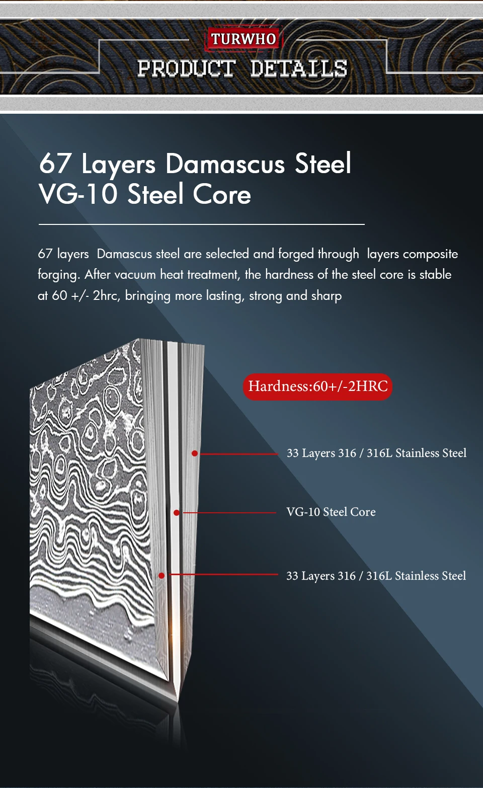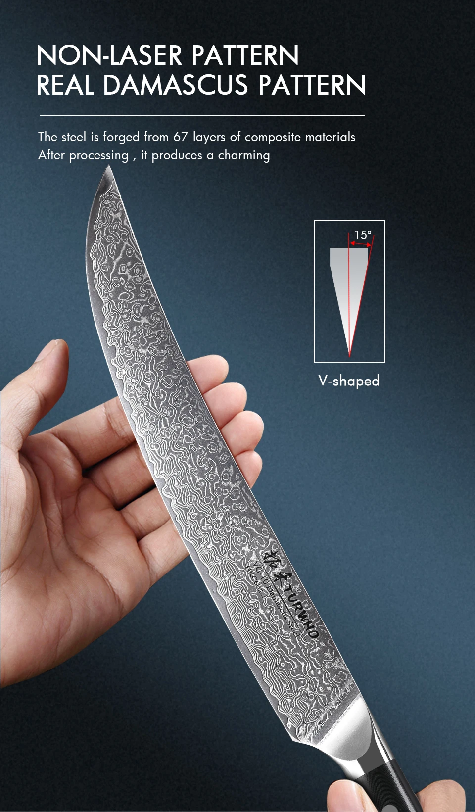 TURWHO Japanese Carving Knife Real 67 Layer Damascus Steel Cook Tools Sharp VG10 Core Kitchen Ham Cleaver Butcher Slicing Knives